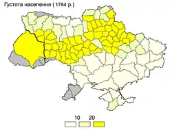 | 1918 | 7 ▬ | УНР + ЗУНР + КубНР=50,23 млн осіб[lower-alpha 7] |