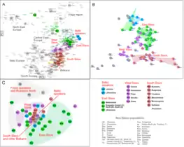 - Kushniarevich A., Utevska O., Chuhryaeva M., Agdzhoyan A., Dibirova K., Uktveryte I., et al. Genetic Heritage of the Balto-Slavic Speaking Populations: A Synthesis of Autosomal, Mitochondrial and Y-Chromosomal Data // PLoS ONE. — 2015. — No. 10(9) (September 2). — DOI:.