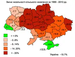 Населення країни розміщене нерівномірно. Велика кількість населення сконцентрована у великих промислових центрах східних областей і Центрального Придніпров'я, навколо приморських міст Північного Причорномор'я, Південного узбережжя Криму, у столиці та навколо неї. Водночас сільське населення найбільше сконцентроване в Прикарпатті, Галичині та на Поділлі