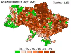 На початку XXI століття кількість населення України скорочується й далі, у 2001—2013 роках — зменшилася на 6 %.