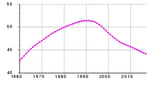 | Фертильність | ▼1,50 дітей на 1 жінку |