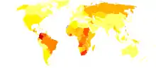 ![]() Рівень насильства в країнах світу, 2004 рік |