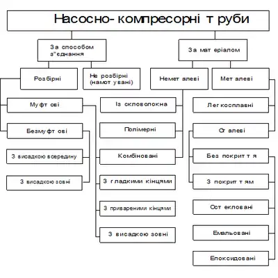 - Насосно-компресорні труби, які використовуються для здійснення у свердловині різних технологічних операцій (гідравлічного розриву пласта, ізоляції припливу пластової води та ін.).
