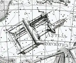 Нове сузір'я. Виокремлене французьким астрономом у 1754 році Нікола Лакайлем, який запровадив 14 нових сузір'їв південної півкулі неба, щоб заповнити декілька тьмяних ділянок зоряного неба. Оригінальною назвою сузір'я була Antlia pneumatica, в честь винайденого Дені Папеном повітряного насоса.