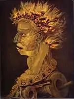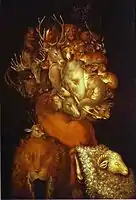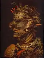 На межі різних жанрів працював Арчімбольдо. Майже завжди він малював різні речі — квіти, овочі, риб, птахів. І завжди компонував їх особливо у зв'язку з своїм завданням, незвичним наміром через сутність одних речей передати сутність інших якостей і змістів. Тому зображення квітів або овочів слугують для створення алегорій (серія «Пори року»), персоніфікацій стихій («Вогонь», «Повітря») чи навіть портретів конкретних людей(імператор Рудольф ІІ у вигляді Вертумну). Жанрова невизначеність дозволила робити на межі створення фокусів, дивацьких картин, які мають якості портрету, натюрморту і картинки-перевертні (відомий «Огородник»).