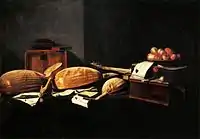 Ф. Нолетті. «Скрипка, нотний зошит і цитрони на арабському килимі», до 1653 р., Лувр, Париж.