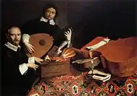 | «Сам Еварісто Баскеніс з Оттавіо Альярді», триптих Альярді, ліва стулка | «Натюрморт з музичними інструментами», триптих Альярді, центральна стулка | «Брати Альярді Алессандро і Боніфачо», триптих Альярді, права стулка |