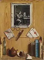 Вільям Майкл Харнетт (1848—1892) навчався в Нью-Йорку і Мюнхені. У своїх натюрмортах він змішував несхожі речі, але вимальовував їж докуметнально і тверезо. Часто вони справляли враження реальних речей. Уславлений зразок натюрморту Харнетта «Музика та талан» (Метрополітен-музей, Нью-Йорк).