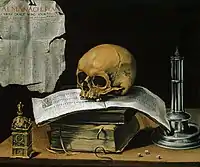 Череп — давній предмет як нагадування про смерть. Він часто з'являється поряд зі святими або в сценах каяття (Тіціан «Каяття Марії Магдалини», Хосе де Рібера «Святий Єронім», офорт, Ель Греко «Святий Франциск»). У натюрмортах «ванітас» череп урівнений з іншими предметами, але надає натюрморту серйозного, філософського настрою, що підкорює йому й інші речі. Особливе поширення натюрморти теми «ванітас» мали в Нідерландах 16 століття і Голландії 17-го.