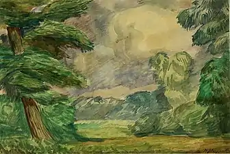 Пейзаж з купальницями, 1908
