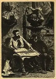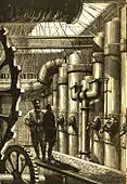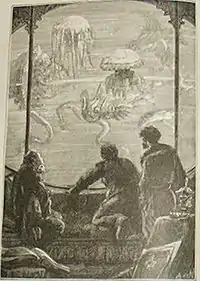 - Ілюстрація до першого видання роману «20 000 льє під водою» 1869 року (художники Невіль і Р'ю)
