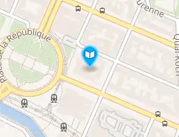 До бібліотеки в межах Страсбурга можна добратися на трамваях ліній B, C, E (їхати до зупинки «Республіка»).