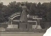 Пам'ятник «Червоноармійцю — захиснику народних мас» з оформленим постаментом біля входу до Пролетарського саду