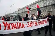 Найбільшого резонансу набула кампанія на знак протесту диктаторському режиму Лукашенка «Свободу Білорусі!». Представники Національного Альянсу взяли участь у мітингу «Чорнобильський шлях» у Мінську, на якому було затримано 5 членів організації.