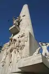 Скульптури Я. В. Редекера, які прикрашають обеліск, символізують, крім іншого, Війну (чотири чоловічі фігури), Мир (жінка й дитина) та Опір (два чоловіки з собаками, що виють).