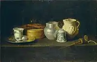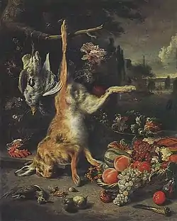 Навпаки, голландець Абрахам ван Калрат, автор нудних картин з зображенням коней і побутових сцен, представлений на виставці приємним натюрмортом із посудом і фруктами, абсолютно позбавленим тривог чи драматизму. Київський натюрморт ван Калрата — свідоцтво усталеного добробуту і спокою, що переходить у монотонність. Такі ж безтривожні його натюрморти в колекціях музеїв Роттердама, Варшави, Гааги, Амстердама, голландського Отерло.