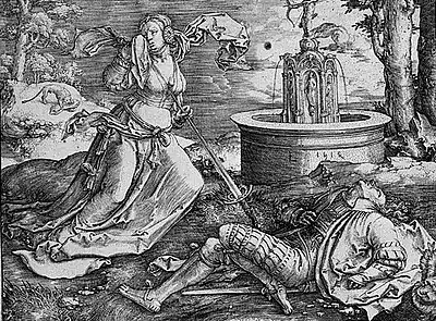 До шедеврів виставки належать гравюри роботи Луки Лейденського. Різкувата манера митця сповіщала його гравюрам додаткову напругу, присмак драматизму навіть тоді, коли він подавав побутові сцени (його «Доярка», щойно подоїла корову, але в фігурі жінки лише невдоволення та втома від важкої щоденної праці). Драматична манера Лейденського цілком виправдана в аркуші «Пірам і Фісба», де йдеться про долю нещасних закоханих (вона і прикрасила виставку). Історію виклав ще Овідій у «Метаморфозах», а потім її підхопили і літератори, і мозаїчисти, і гравери, і навіть майстри вітражів. Лейденський не забув ні померлого Пірама, ні відчай Фісби, що знайшла мертвого коханого, ні левицю, що стала причиною трагедії помилок. За джерелом вавілонські закохані мали зустрітися біля дерева шовковиці, дерева на гравюрі є, але невідомо, чи є серед них шовковиця. Несподівану світлу ноту в драматичну композицію внесло зображення маленького ренесансного фонтана, прикрашеного скульптуркою Амура з луком зі стрілою та монограмою Лейденського та датою.