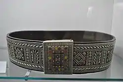 Художню обробку шкіри, тісно пов'язану з мосяжництвом, репрезентовано кептарями, чоловічими торбинками, поясами, постолами, у декоруванні яких використовували капслі, колосочки, ґудзики—бовтиці, геометричний орнамент.