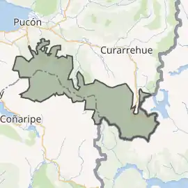 Розташований у провінціях Каутін (IX Регіон Арауканія) і Вальдівія (XIV Регіон Лос-Ріос), в 12 км на північний захід від міста Пукон, у районі великих вулканів Патагонських Анд.