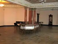 Господарська споруда (кінець XIX століття) дійшла до наших днів з невеликими перебудовами. Стилістично близька спорудам палацового комплексу (неокласицизму). Будівля з цегли, побілена, прямокутна в плані з ризалітом по центру східного фасаду, одноповерхова. Корпус значної протяжності, північний фасад членується пілястрами. Підфризовий поясочок, переходить в обрамлення круглих вікон, виділяє на фасаді піддашшя. Центральна частина головного фасаду акцентована 4-колонним портиком, над подвоєними колонами якого антаблемент і трикутний фронтон. Споруда з пласким склепінням, чотирискатним дахом на дерев'яних кроквах, покрівля металева. На фасадах під карнизом — колоподібні верхні вікна. В процесі експлуатації — повне внутрішнє перепланування.