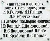 - Меморіальні дошки і пам'ятні знаки, присвячені Шевченку // Шевченківська енциклопедія: — Т.4:М—Па : у 6 т. / Гол. ред. М. Г. Жулинський.. — Київ : Ін-т літератури ім. Т. Г. Шевченка, 2013. — С. 151-161.