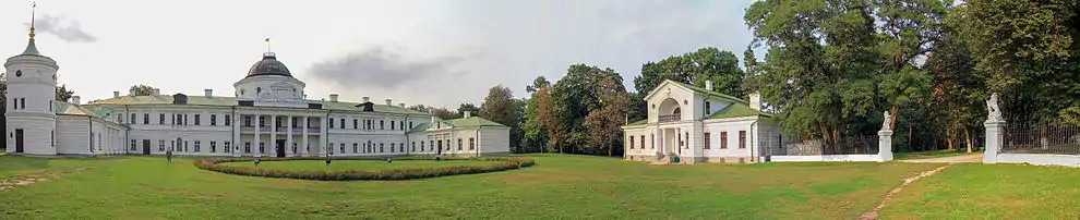 Садиба була заснована на місці хутора як одна із резиденцій президента Малоросійської колегії і генерал-губернатора Малоросії графа П. О. Рум'янцева-Задунайського. За проектом московського архітектора Карла Бланка український зодчий Максим Мосципанов звів розкішний палац та спланував регулярний парк при ньому. Архітектура палацу цього періоду належить до стилю романтичного напрямку, притаманного спорудам XVIII — поч. XIX століть.