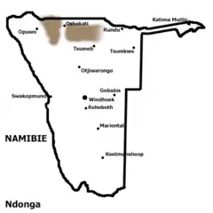![]() Поширення мови ндонга в Намібії | |