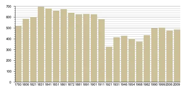 Динаміка населення (base Cassini de l'EHESS pour les nombres retenus jusque 1962[3], base Insee à partir de 1968 (population sans doubles comptes puis population municipale à partir de 2006)[4] · [5] ):