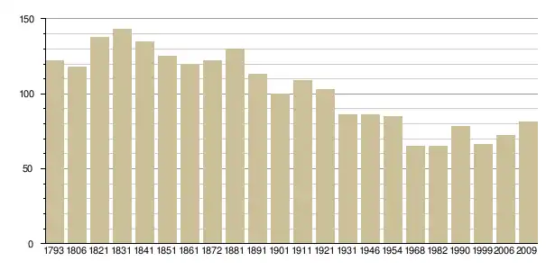 Динаміка населення (base Cassini de l'EHESS pour les nombres retenus jusque 1962[3], base Insee à partir de 1968 (population sans doubles comptes puis population municipale à partir de 2006)[4] · [5] ):