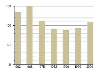 - Insee : historique des populations par commune depuis le recensement de 1962, наведено за французькою вікіпедією