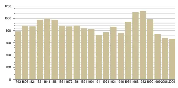Динаміка населення (base Cassini de l'EHESS pour les nombres retenus jusque 1962[3], base Insee à partir de 1968 (population sans doubles comptes puis population municipale à partir de 2006)[4] · [5] ):