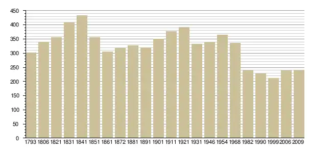Динаміка населення (base Cassini de l'EHESS pour les nombres retenus jusque 1962[3], base Insee à partir de 1968 (population sans doubles comptes puis population municipale à partir de 2006)[4] · [5] ):