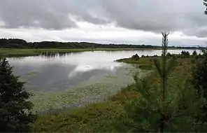 Береги низькі, піщані. На озері є 3 острови площею 2 га.