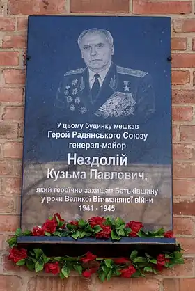 Нездолій Кузьма Павлович (нар. 14 листопада 1923 — пом. 7 травня 2010) — генерал-майор, Герой Радянського Союзу.