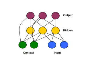 У перших рекурентних мережах головною ідеєю було дати мережі бачити свій вихідний образ на попередньому кроці. У такої мережі тільки частина рецепторів приймає сигнали з навколишнього світу, на інші рецептори приходить вихідний образ з попереднього моменту часу. Розглянемо проходження послідовності сигналів через мережу. Сигнал надходить на групу рецепторів сполучених із зовнішнім світом (INPUT) і проходить у прихований шар (HIDDEN). Перетворений прихованим шаром сигнал піде на вихідний шар (OUTPUT) і вийде з мережі, а його копія потрапить на затримку. Далі в мережу, на рецептори, що сприймають зовнішні сигнали, надходить наступний образ, а на контекстну групу рецепторів (CONTEXT) — вихідний образ з попереднього кроку з затримки. Далі з усіх рецепторів сигнал піде в прихований шар, потім на вихідний.