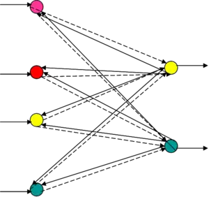 У ДАП конкуренція реалізується взаємним з'єднанням нейронів усередині кожного шару за допомогою додаткових зв'язків. Ваги цих зв'язків формують іншу вагову матрицю з позитивними значеннями елементів головної діагоналі і негативними значеннями інших елементів.