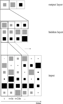 Вхідний сигнал доповнюється затриманими копіями як іншими входами, нейронна мережа є інваріантною для часової зміни, оскільки вона не має внутрішнього стану.