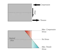 На підставі вимірювань відстаней між аналогічними точками довільних двох перерізів можна виявити, що верхні поздовжні волокна балки вкорочуються, а нижні — подовжуються. Але можна знайти і такі волокна, довжина яких при згинанні залишається незмінною. Сукупність волокон, які не змінюють своєї довжини при згинанні балки, називається нейтральним шаром. Волокна, що належать нейтральному шару до деформації лежать в одній площині, а в деформованому стані утворюють деяку циліндричну поверхню. В обох випадках кожний поперечний переріз балки перетинається з нейтральним шаром по прямій, яка називається нейтральною лінією або нейтральною віссю, положення останньої по висоті перерізу поки невідоме. Якщо всі зовнішні сили, що діють на прямий брус (включаючи реакції опор), розташовані в площині згинання перпендикулярно до вигнутої осі бруса, то нейтральний шар збігається з осьовим шаром, а нейтральна вісь утворюється перетином цього шару з поперечним перерізом.