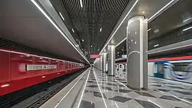 Оздоблення має відсилання до місячної ночі; основними кольорами в оздоблені станції є білий і сірий. В облицюванні використані металокерамічні панелі: рубіново-червоного кольору для колійних стін, перлинно-сірого та білого кольорів — для колон.