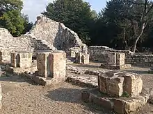 Приблизно в 30 метрах від виноробні знаходяться руїни трьохцерковної базиліки VI століття, зовнішній вигляд якої був змінений на початку VIII століття, ймовірно, в результаті ворожого нападу, про що свідчать сліди вогню. Фрагменти кераміки XII—XIII століть, знайдені на підлозі церкви, вказують на те, що церква все ще використовувалася в той період, будучи зруйнованою аж в XIV столітті, можливо, в результаті вторгнення Тамерлана в Грузію. Навколо церкви розташовано кілька поховань[26].