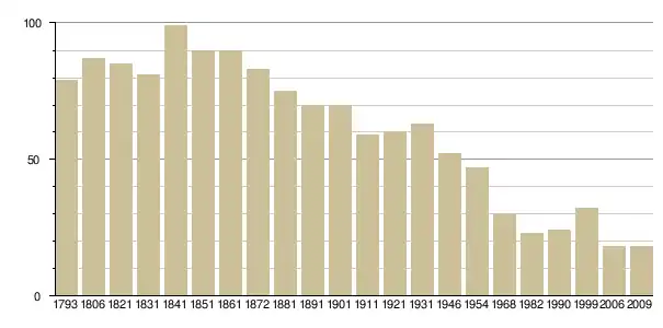 Динаміка населення (base Cassini de l'EHESS pour les nombres retenus jusque 1962[3], base Insee à partir de 1968 (population sans doubles comptes puis population municipale à partir de 2006)[4] · [5] ):