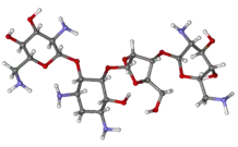 Неоміцин — природний антибіотик з групи аміноглікозидів І покоління. Через високу токсичність застосовується виключно місцево у складі крапель та мазей. Вироблення препарату передбачає використання продуктів життєдіяльності Streptomyces fradiae, однак значно вищий вихід антибіотику має Streptomyces marinensis (7,3 г/л).[1] Уперше неоміцин був отриманий у 1949 році Зельманом Ваксманом та Лешевальє з культури грибка Streptomyces fradiae.[2] На сьогодні в людей препарат не застосовують.