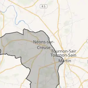 - Розташування муніципалітету Неон-сюр-Крез на мапі Франції та сусідні муніципалітети