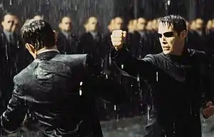 Нео вступає з ним у смертельний двобій, попри те, що Сміт перевершує його майстерністю. Наприкінці Нео скидає Сміта під потяг і тікає. Після нетривалої погоні решти агентів Нео добирається до кімнати з телефоном, на порозі якої його зустрічає Сміт і розстрілює героя в притул. Нео вмирає в Матриці і в реальності, однак освідчення Триніті в коханні до Нео і поцілунок створюють програмну помилку. Нео оживає, тепер цілком усвідомлюючи владу людини над Матрицею. Приголомшені Агенти відкривають шквальний вогонь, але більше не можуть навіть поранити Нео, бо він зупиняє кулі силою думки. Нео отримує можливість бачити код Матриці, після чого проникає в агента Сміта і знищує його.