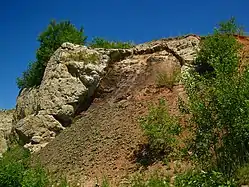 Юрський вапняк, що зазнав впливу удару, примітний рострами белемнітів, розтрісканими на скибки, що змістилися під дією напруження зсуву і згодом зцементувалися знову. Вони трапляються як у мегаблоках, так і в кольоровій брекчії[41][42].