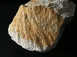 - Умовна межа, встановлена для картографічних цілей; менші уламки розглядають як частину кольорової брекчії[1][40].