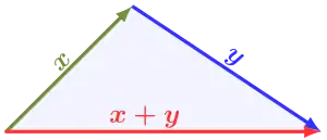 - В гільбертовім просторі, нерівність трикутника є безпосереднім єдинозворотнім нетривіальним наслідком нерівності Коші — Буняковского.