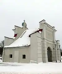 - фарний костел Божого тіла[7] побудований 1593 р. за проєктом італійського архітектора Джованні Марії Бернардоні. Взірцем був храм єзуїтів у Римі — Іль Джезу (архітектори Віньола, Джакомо делла Порта).