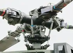 Система керування головним гвинтом, складається з автомату перекосу, з'єднаного з осьовими шарнірами лопатей гвинта за допомогою тяг (елементів, які передають поступальний рух). Поворот лопаті в осьовому шарнірі викликає зміну кута установки лопаті.