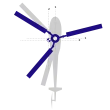 І навпаки, при зменшенні швидкості обтічного повітряного потоку, лопать опускається вниз, збільшується кут установки лопаті, збільшується підіймальна сила.[14]
